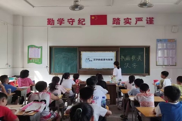 為讓學(xué)生了解漢字的造字智慧和漢字中的文化內(nèi)涵,武昌理工學(xué)院第十七屆“大手牽小手”鄉(xiāng)村振興崇陽啟明星志愿服務(wù)團隊在咸寧市崇陽縣洞泉村洞泉小學(xué)開展支教活動,特別開設(shè)“圓夢工程”傳承優(yōu)秀傳統(tǒng)文化課程——《書畫最美漢字》。
