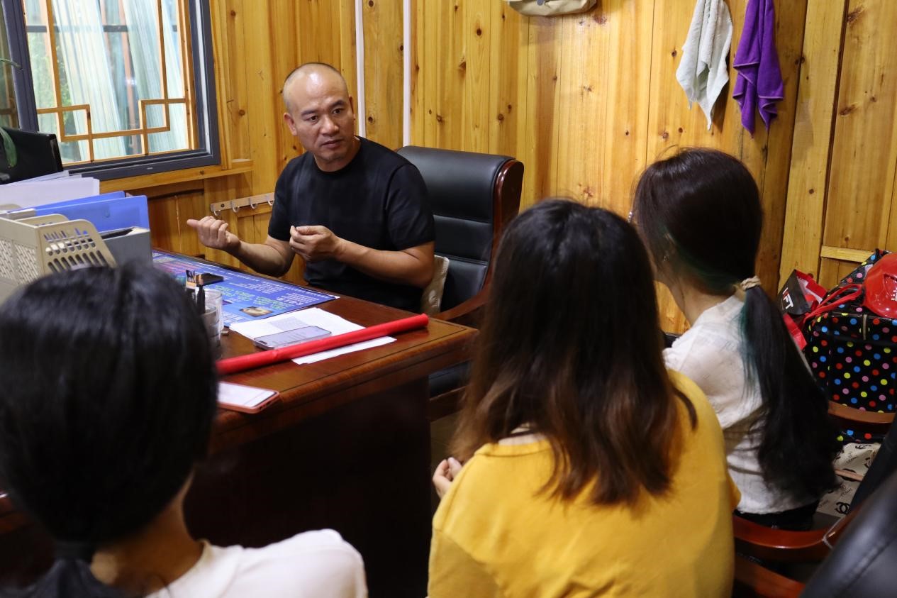 圖為三都縣人大代表向團隊成員介紹馬尾繡和旅游業融合的情況 文英燦 攝