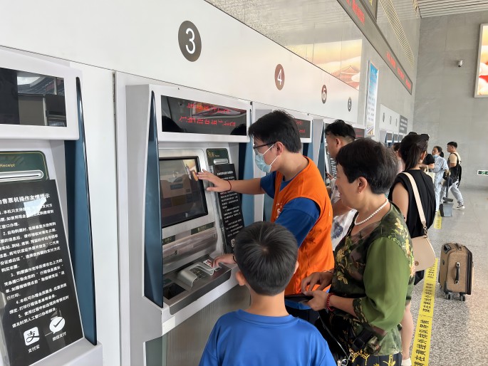 秘籍五:累,并快樂著,汗水才能收獲驕傲。下午兩點半,志愿者趙嘉宇僅在一個小時就幫助了32名旅客辦理了各種業務。每到雙休,售票廳內人群熙熙攘攘,再配上這夏日暑氣,使得售票廳無比悶熱,而趙嘉宇卻總是主動請纓,直面這正午的炎熱。購票、改簽、打印報銷憑證、查看行程信息, 利用“鐵路12306”APP和自動售票機,趙嘉宇熟練地幫助了一位又一位旅客。他會根據旅客時間,去幫老年旅客們下載和注冊手機“鐵路12306”APP,并耐心地教會他們如何使用。在為旅客講解使用方法時,他干勁十足,全然不知汗水已在額頭凝聚成珠,不斷滑落到早已浸濕的衣衫。拭去汗水,迎接下一批旅客,他依舊會精神滿面。