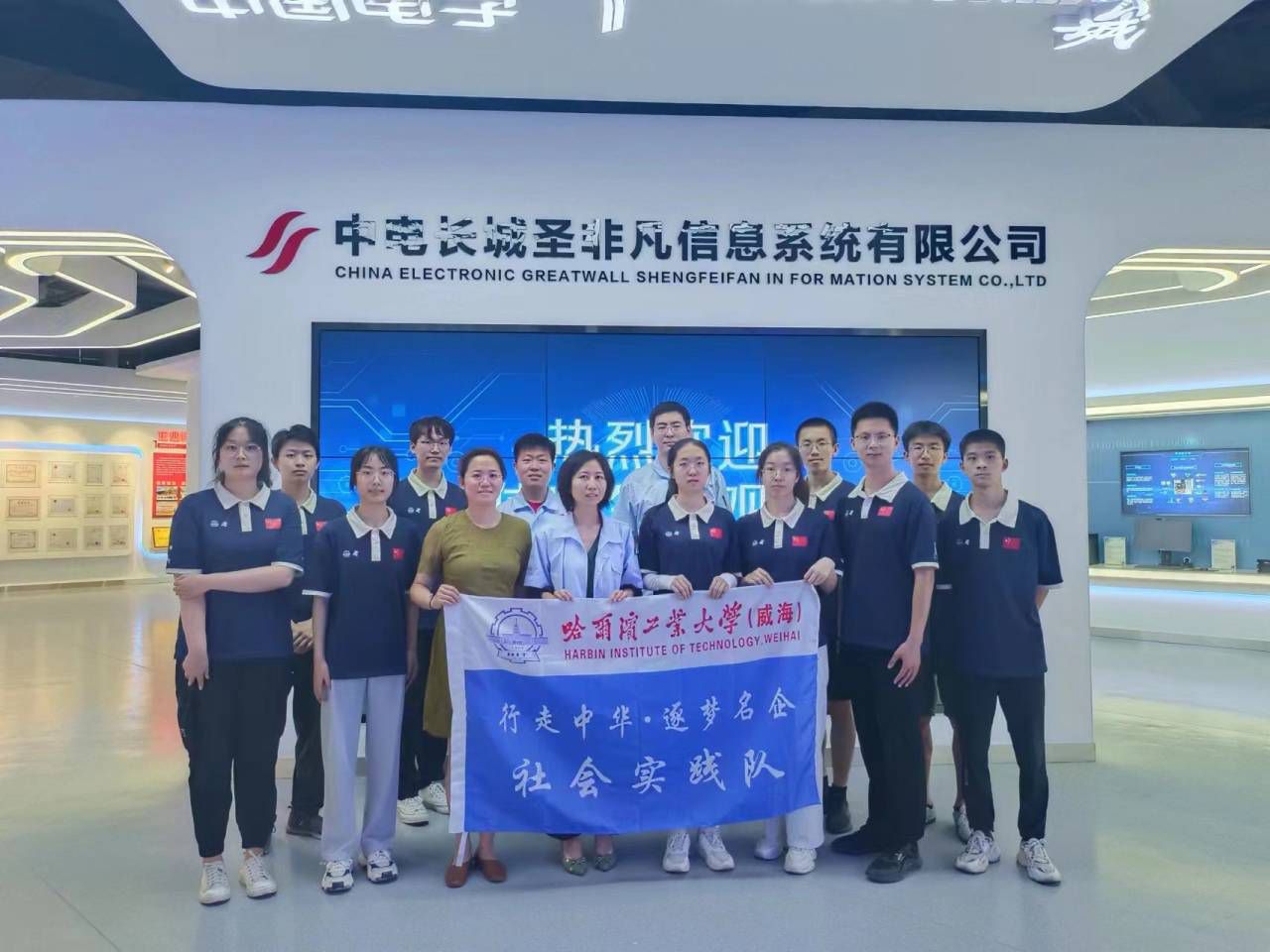 下午,實踐隊來到中電長城圣非凡信息系統有限公司。中電長城圣非凡黨委副書記李心怡、副總經理、哈工大校友張旭、通信裝備事業部總經理孫智超、人力資源部經理康莎莎等熱情接待了實踐隊一行。