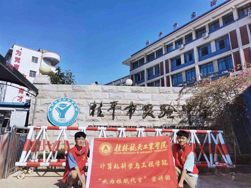 暖暖母校風(fēng),深深校友情。為幫助高中學(xué)子結(jié)合自身學(xué)習(xí)情況、興趣愛好、專業(yè)特長等樹立精準(zhǔn)的大學(xué)目標(biāo),激勵他們?yōu)閴粝氩恍笂^斗,同時擴大學(xué)校知名度,提升桂林航天工業(yè)學(xué)院影響力,吸引更多優(yōu)秀學(xué)子報考桂林航天工業(yè)學(xué)院,2023年7月24日,桂林航天工業(yè)學(xué)院計算機科學(xué)與工程學(xué)院“我為桂航代言”宣講團來到桂平市實驗中學(xué),給準(zhǔn)高三的同學(xué)們開展宣講活動。
