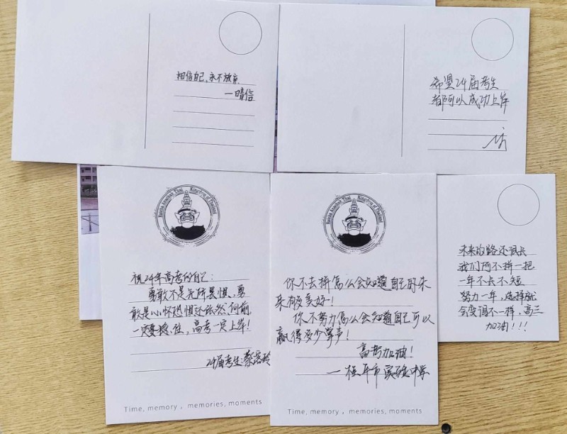在宣講活動的最后環(huán)節(jié),宣講團成員給同學(xué)們準(zhǔn)備了120張印有桂航校園風(fēng)景的明信片留作紀(jì)念,讓同學(xué)們在明信片上寫下備考宣言及高考目標(biāo),激勵自己朝著理想堅持不懈、努力奮斗。