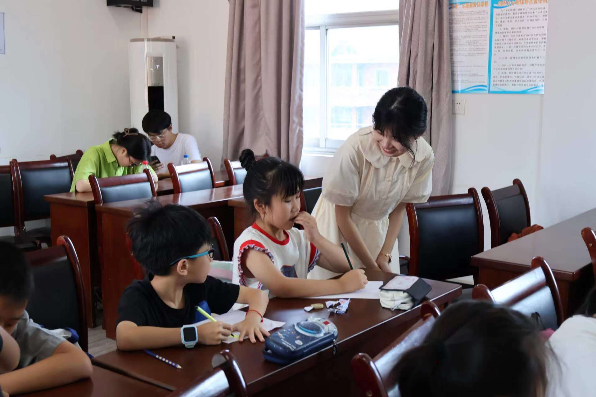 鄉(xiāng)村要振興,教育必先行,服務(wù)中心的負(fù)責(zé)人曹先生表示,暑期以來,每天都會(huì)有許多孩子來這里學(xué)習(xí),他們的父母白天忙于上班,沒有太多時(shí)間陪伴孩子,爺爺奶奶年紀(jì)大了身體也有些吃不消,此次有這么多年輕有活力的老師來對孩子展開普通話教學(xué),對孩子們開拓視野、啟迪思維有很大幫助。
