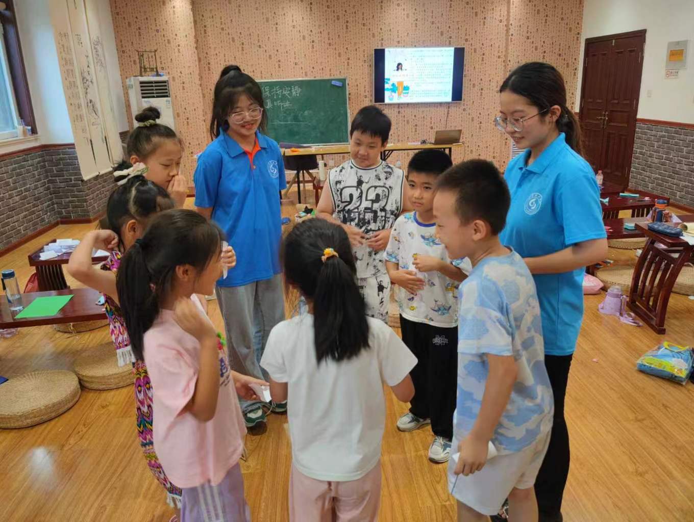 第一部分:實(shí)踐團(tuán)成員先將小朋友們分成三組。每個(gè)小朋友會(huì)獲得一張標(biāo)有不同垃圾名稱的身份卡片并向同組其他小朋友展示。由第一名小朋友正確指出另一位小朋友的身份卡片,被叫到的小朋友需要完成指定動(dòng)作后,方可再次指出下一位小朋友的身份卡片,以此循環(huán)進(jìn)行。實(shí)踐團(tuán)的成員們積極維護(hù)游戲秩序,有條不紊地帶領(lǐng)小朋友們按照規(guī)則進(jìn)行游戲,并且保證每位小朋友的游戲參與度。這個(gè)輕松愉快的游戲體驗(yàn)環(huán)節(jié)不僅增進(jìn)了小朋友間的友誼,更潛移默化的鍛煉小朋友們的記憶能力。