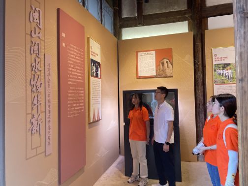 圖為實(shí)踐隊(duì)成員參觀習(xí)近平總書記的福建非遺情緣圖片展 外國語學(xué)院林揚(yáng) 攝