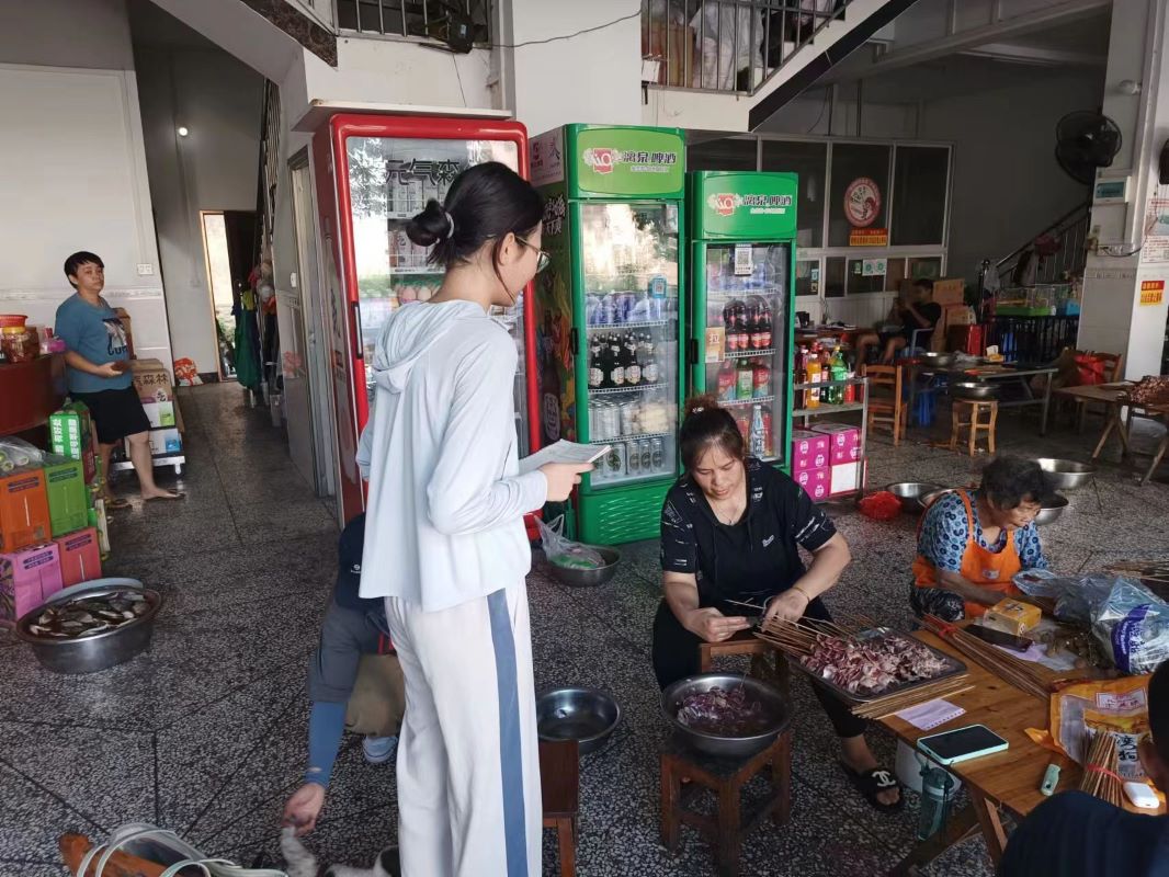 8月16日下午,實踐隊隊員們前往正在準備食材的燒烤店,對店主進行采訪,了解他們如何經營燒烤店。從中發現某些燒烤店的競爭優勢或存在的問題,并想辦法解決這些問題。廣西天氣炎熱,于是人們更喜歡在晚上出門活動,人們在進行活動過后,總是想要吃點夜宵,燒烤就成為了一種不錯的選擇。再加上淄博燒烤的火爆出圈,人們對燒烤的需求很旺盛,這給燒烤店的經營者帶來了很多機會。但在燒烤市場的競爭也變得越來越激烈,這讓燒烤經營者們不得不想出新的辦法來提升自己的競爭優勢。因此淄博燒烤店在淄博燒烤熱度的幫助下就具有了獨特的競爭優勢,但想要更好地發展還要將淄博燒烤與本地特色融合起來,使其碰撞出新的火花。有些淄博燒烤店就能很好地將淄博燒烤與當地特色完美融合,這些商家將淄博燒烤中的蘸料換成當地人所喜愛地果醬。這種果醬,口感酸甜,與純正的淄博燒烤相就多了一些酸甜的口感,非常鮮美。淄博燒烤的小餅中通常夾著小蔥,有些燒烤店還給顧客們提供其它的蔬菜讓他們夾在小餅中,其中最具當地特色的便是腌泡的酸蘿卜等腌制食物。