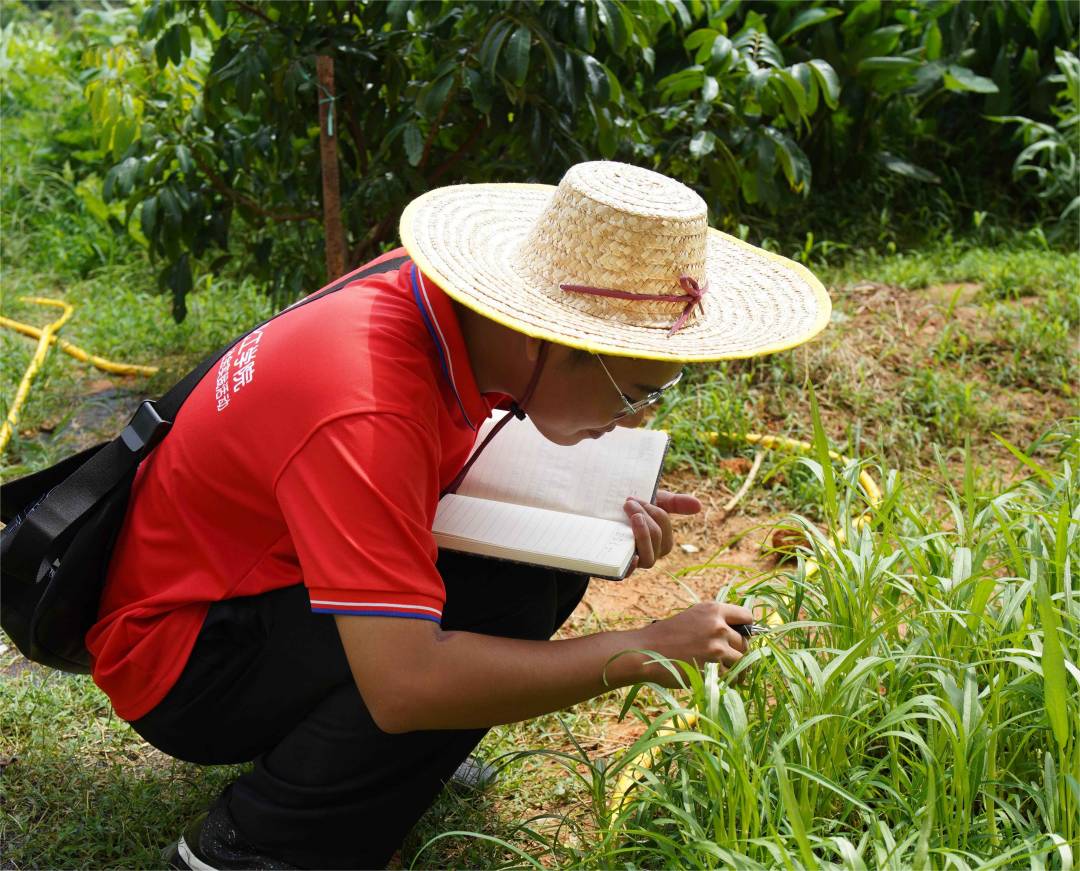 圖為實踐隊隊員記錄北運菜生長特點與優勢。通訊員 王智強 攝