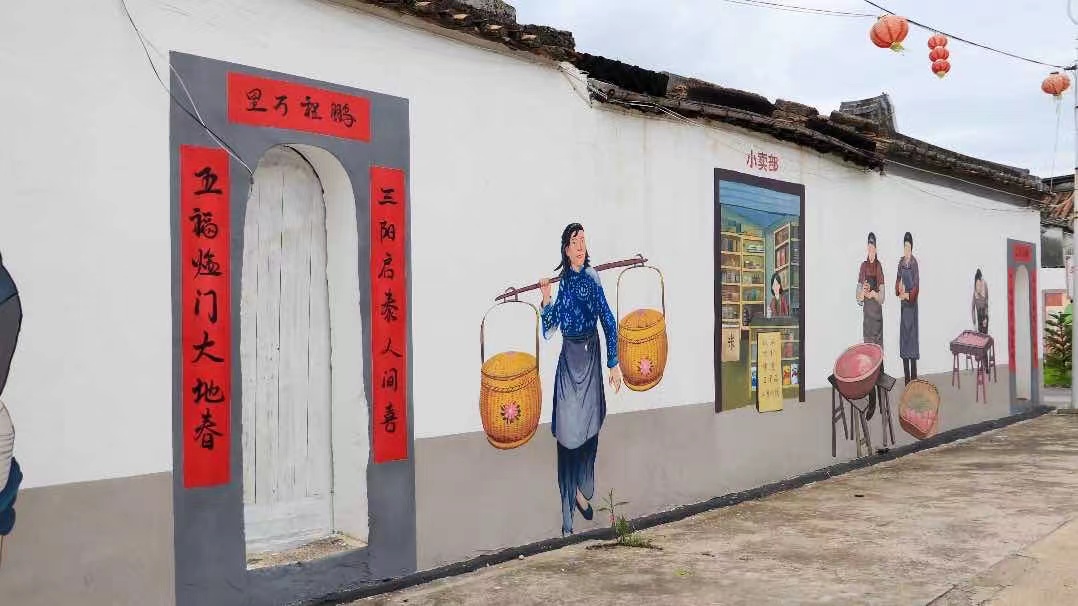 隨后,團隊來到了粿品工坊門口的外部走廊,從粿品工坊門口開始進行直播,直播主播呱呱宇和咕咕喆沿著綺麗醒目的壁畫,邊走邊為直播間的小伙伴們講解關于潮汕傳統特產——“粿”。指導老師楊雪柳也加入其中,帶動鏡頭與大家進行互動。