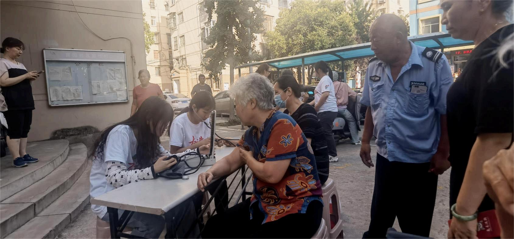 實踐團前往綠苑花園社區開展老年人健康義診活動,以專業精準的醫療服務、通俗易懂的科普形式,做好老年群體的健康管理、疾病預防、健康生活方式傳播。活動現場前來問診的居民絡繹不絕,實踐團現場為老年人細心測量血壓,記錄相關數據,并結合老年人血壓情況給出相應的個性化具體建議和生活指導,為老年人健康“保駕護航”。活動現場,實踐團指導老師梁同表示:“我們發起這個志愿測量血壓的活動,是希望給老年人提供一個方便、快捷的測量血壓的機會,以便老年人及時了解身體健康狀況,采取積極的預防措施,為老年健康事業貢獻青春力量。”