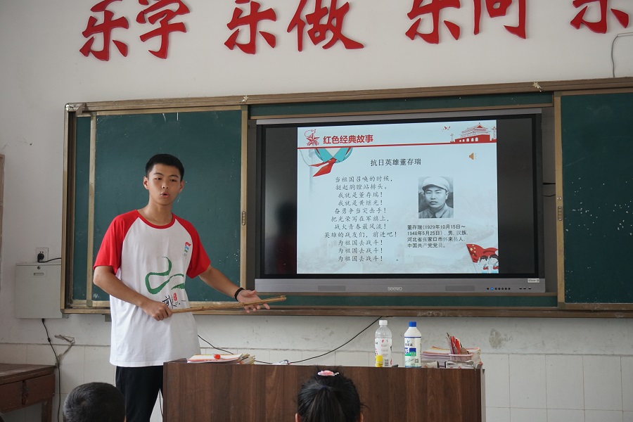 圖為支教組志愿者為小朋友們講述紅色故事 安敏攝
