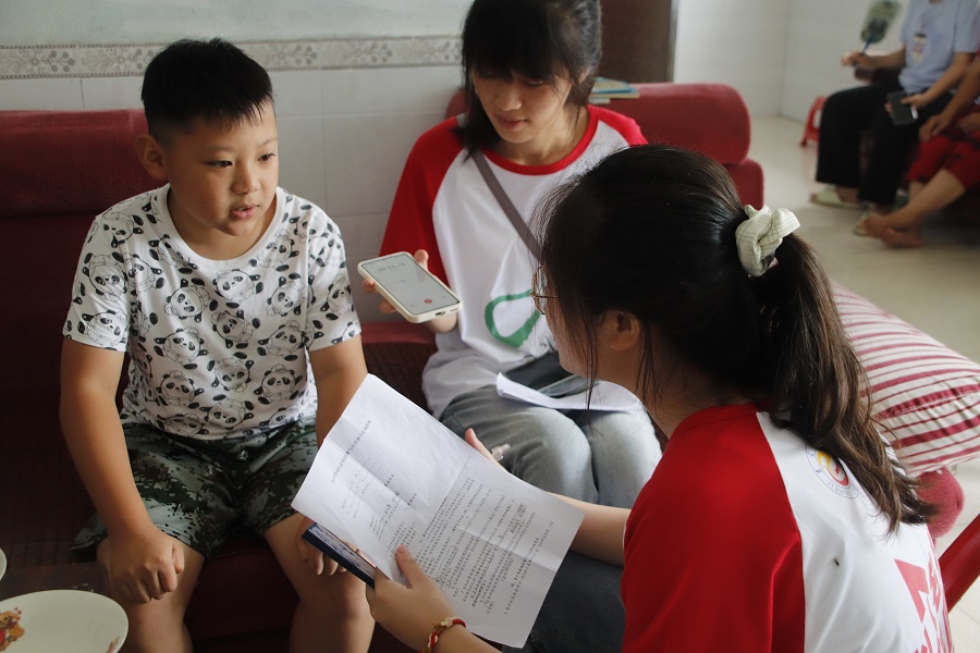 圖為調(diào)研組志愿者進(jìn)行青少年面對(duì)面問(wèn)卷訪(fǎng)談 謝晗攝