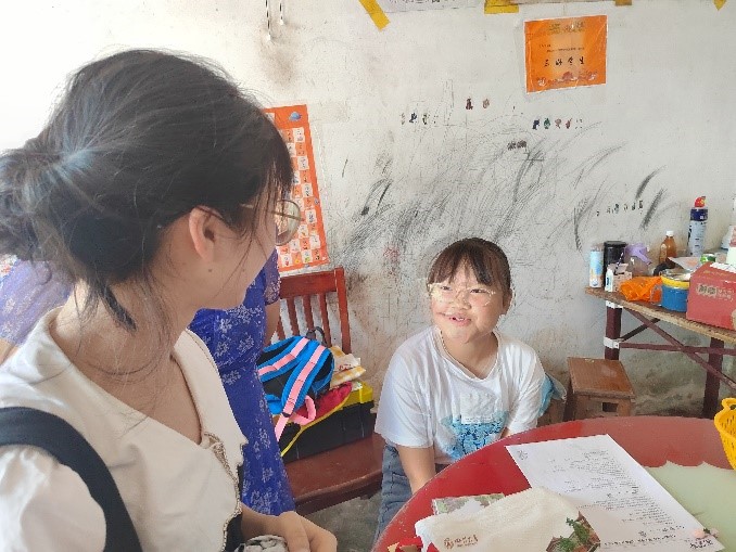 除了關注獨居老人,團隊也與留守兒童進行深入交流。志愿者們詢問了解兒童所受醫(yī)藥科普教育情況,并利用科普宣傳資料面向兒童進行醫(yī)藥知識科普。通過這樣的宣傳,促進兒童樹立健康用藥意識,輻射到基層家庭。