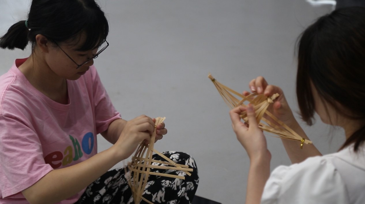 通過實踐成員的自我摸索與觀摩余統善師傅的制作過程,實踐成員們靈活地運用著手中的竹篾,在一挑一壓,交相纏繞間,一件件作品有模有樣地完成了。浮現在大家笑顏中的,除了成功制作竹編小船的喜悅,更重要的是在學習竹編技藝的過程中體會到非遺竹編的魅力以及手工匠人專心致志、嚴謹細致的精神。