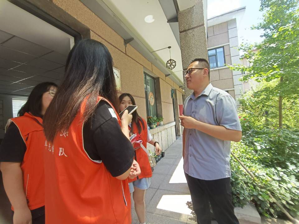 圖為實(shí)踐隊(duì)伍與五蓮縣企業(yè)工作人員交談