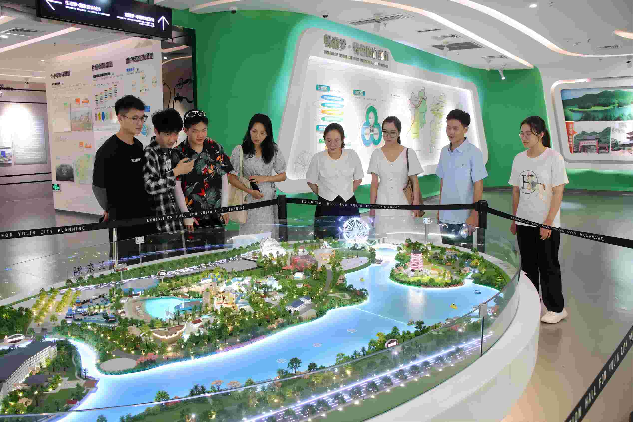 圖為實踐團成員在玉林市城市規劃館參觀玉東湖建設規劃。多彩大學生網通訊員 韋明練 供圖