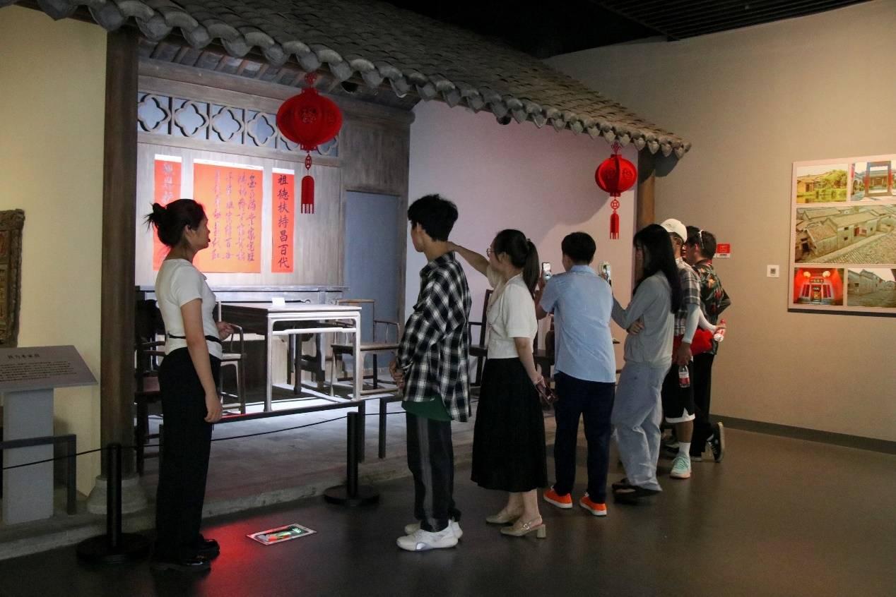 圖為實踐團成員在博物館參觀精致的木雕家具。多彩大學生網通訊員 韋明練 供圖
