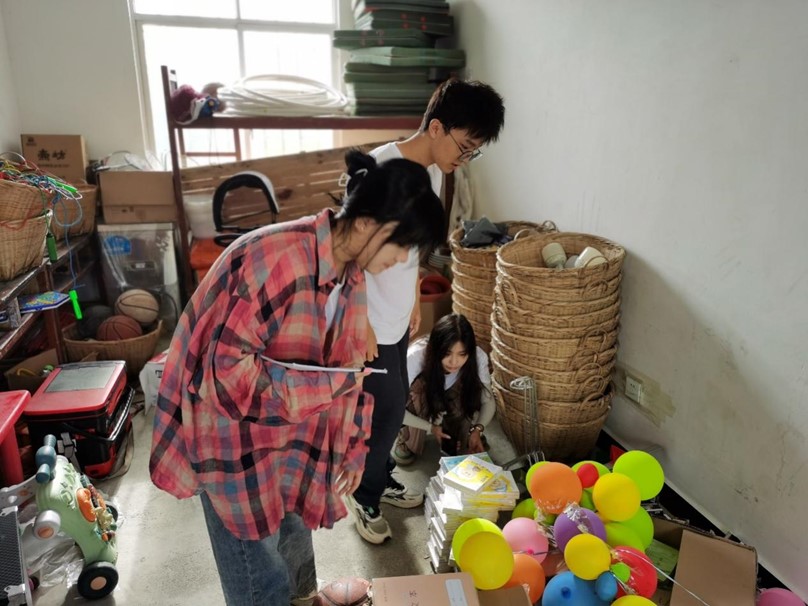 圖為小組成員在對小學內的器材室進行測繪。 胡祝誠供圖。