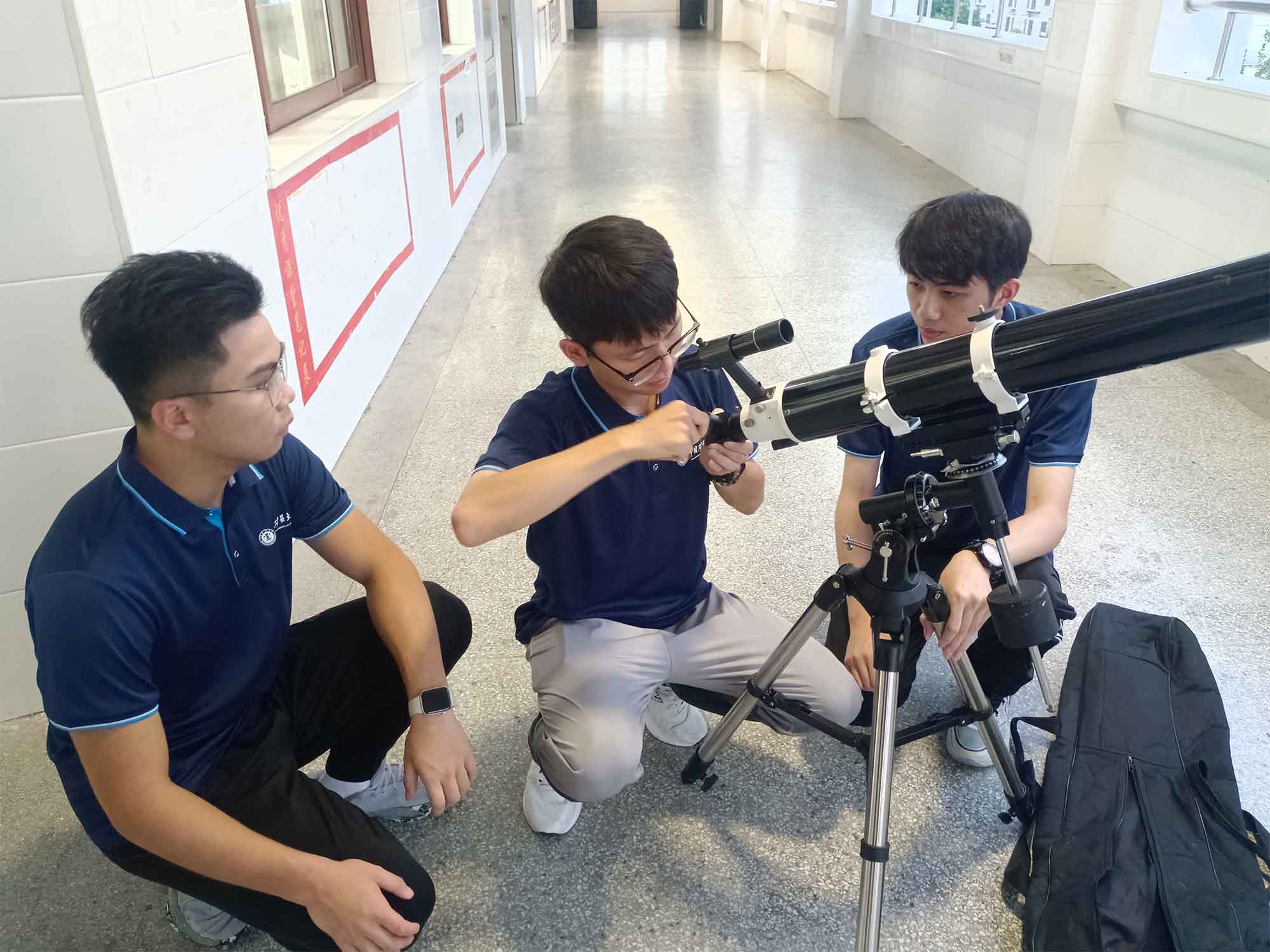圖為實(shí)踐團(tuán)成員在組裝望遠(yuǎn)鏡。