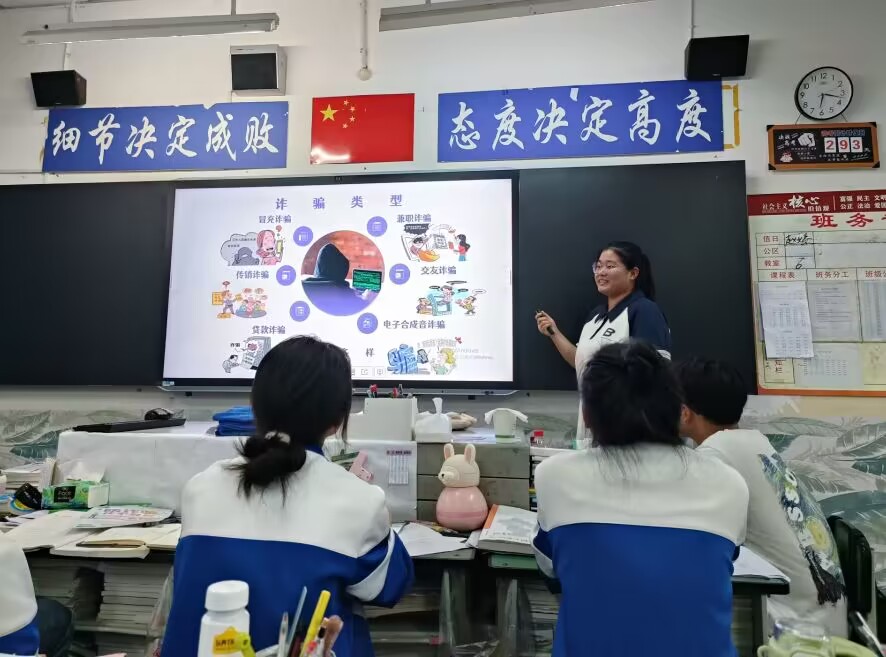為提升青少年應對詐騙的能力,幫助他們掌握防范詐騙的方法,2023年8月14日,團隊宣講人朱嬌嬌分別于河南省周口市鄲城縣第一高級中學和鄲城縣第一中學進行了防詐主題宣講,通過介紹詐騙的概念及類型幫助同學們形成初步的了解,并結合現實中的案例與同學們展開討論,引發了同學們深入的思考,使他們加深了對詐騙防范的認知。