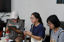 圖為實踐隊員認真聆聽并記錄蔣偉書記講述內(nèi)容。