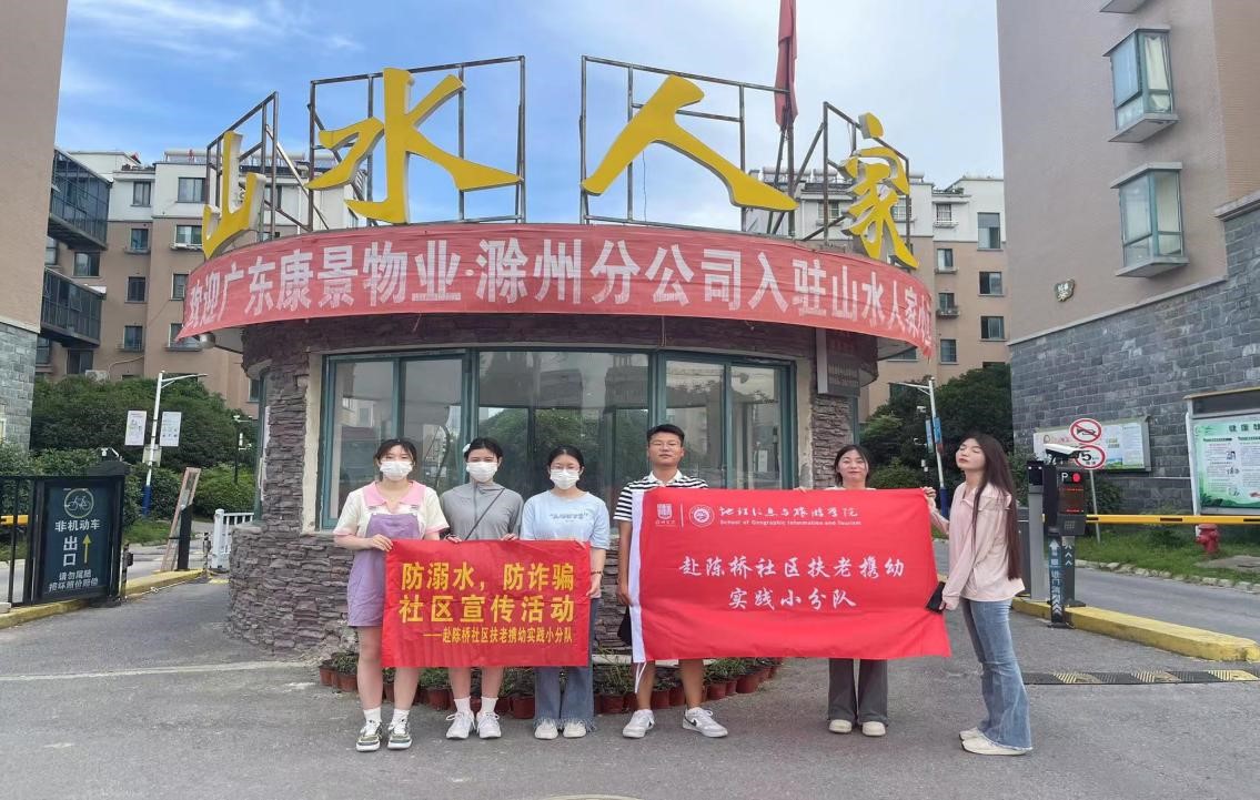 2023年6月28日滁州學院“赴陳橋社區扶老攜幼實踐小分隊”到達陳橋社區下面的小區里面調研并宣講詐騙手段、防詐騙的知識和防溺水的重要性。實踐小分隊來到滁州市陳橋社區為老年人及青年人利用旅游專業知識來了解滁州美好環境,課外游戲等來開展的調研講解活動。