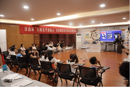 圖為團(tuán)隊(duì)成員姜欣婷同學(xué)為小朋友們講解有關(guān)苗族的民族課程