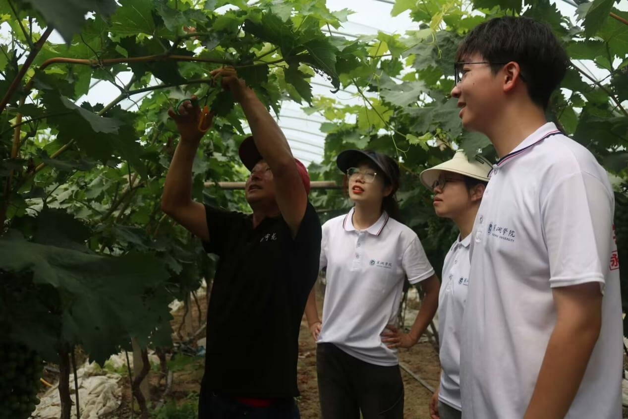 走著走著你會看見葡萄架下有著幾處黑影,那是辛勞的果農們在田里勞作。他們穿著勞動服,佩戴著帽子和手套,他們分工合作,有的人在葡萄藤旁修剪枝條,有的人在葡萄藤旁除草,還有的人在田地里松土。