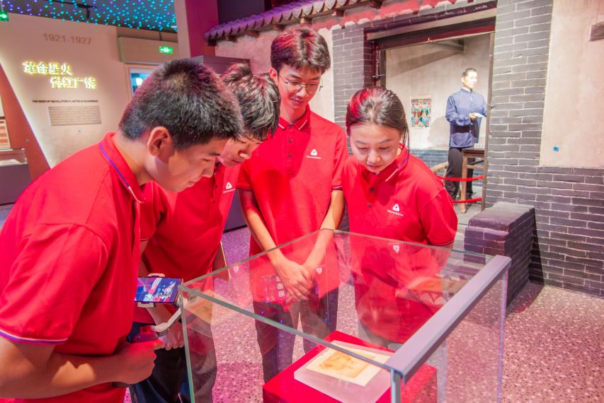 圖為實踐隊隊員觀看《共產黨宣言》 任鑫攝