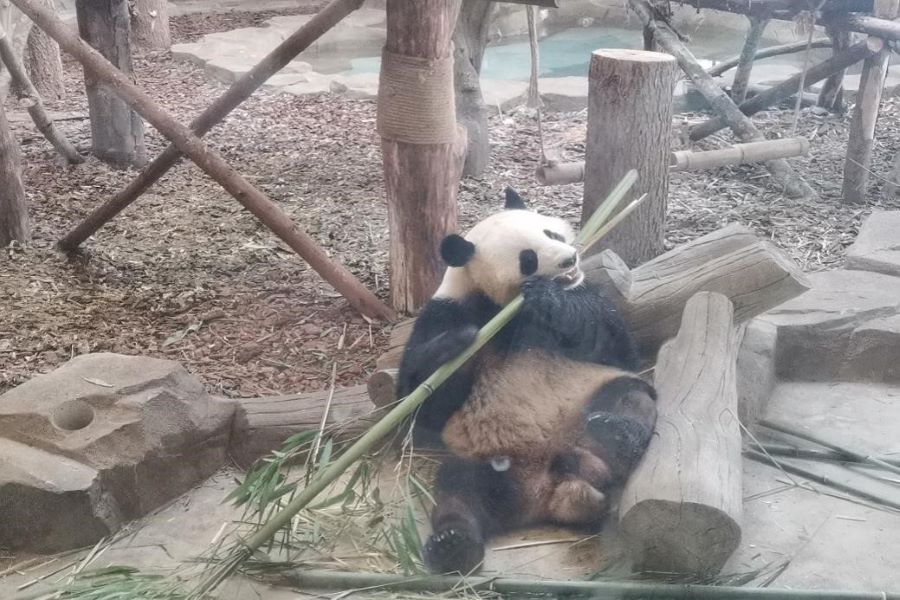 圖 3 熊貓生活 為了更好地展示大熊貓的生活習性,基地設置了多個展示區域,讓游客們可以近距離觀察到這些可愛的動物。游客們可以欣賞到熊貓在竹林中吃食、嬉戲、休息的場景,真切感受到它們的獨特魅力。