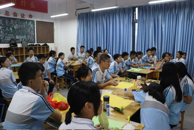 活動舉辦期間,宣傳組組長鄧惠婷對樹葉拼畫活動內容進行講解,通過課件以及視頻開發學生創作思維,在學生創作期間指導學生作品,解答學生疑惑,并且記錄學生認真活動的狀態表現。其他宣傳組成員作為助教配合管理學生活動紀律。