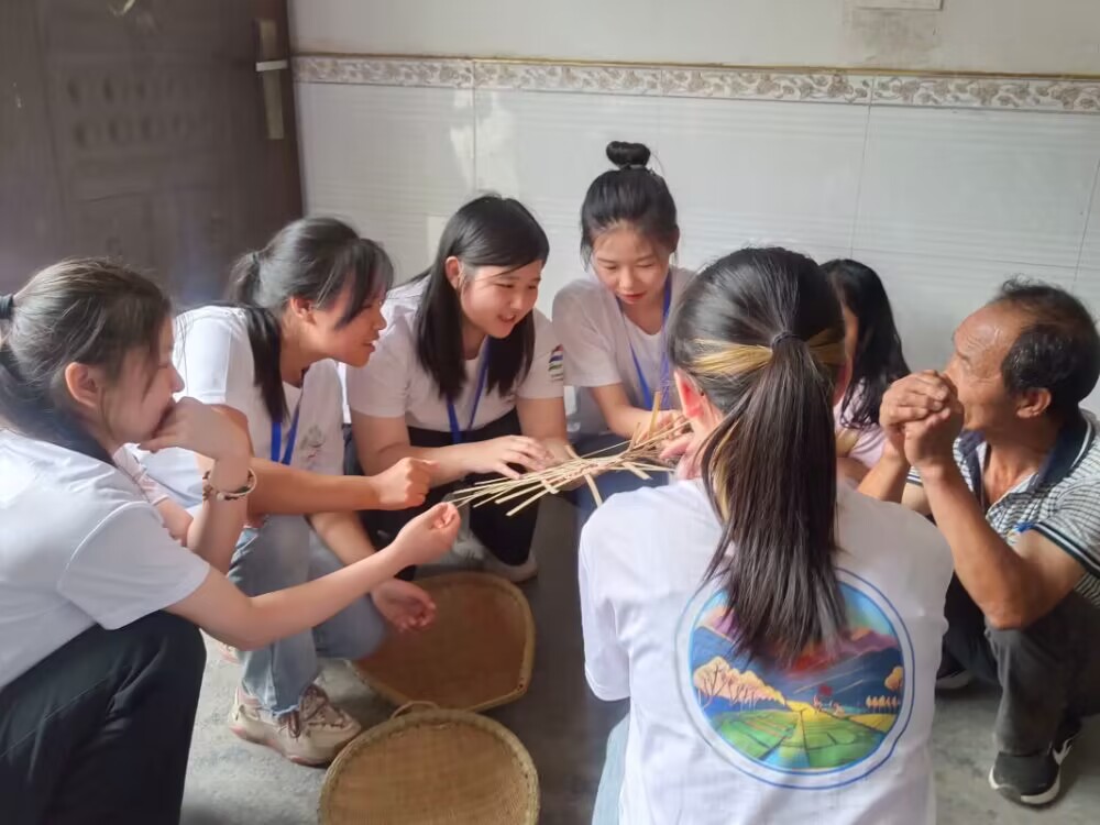 圖為肖老教社會實踐隊員竹編。 任思睿 攝