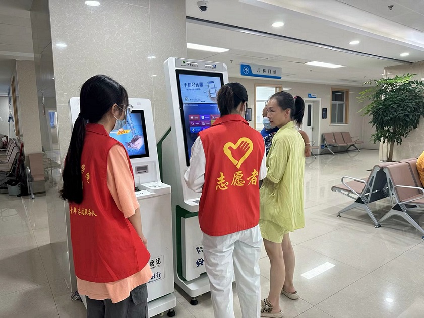 圖為楚漢青年志愿隊隊員正在進行導診服務。 黎運鋒 攝