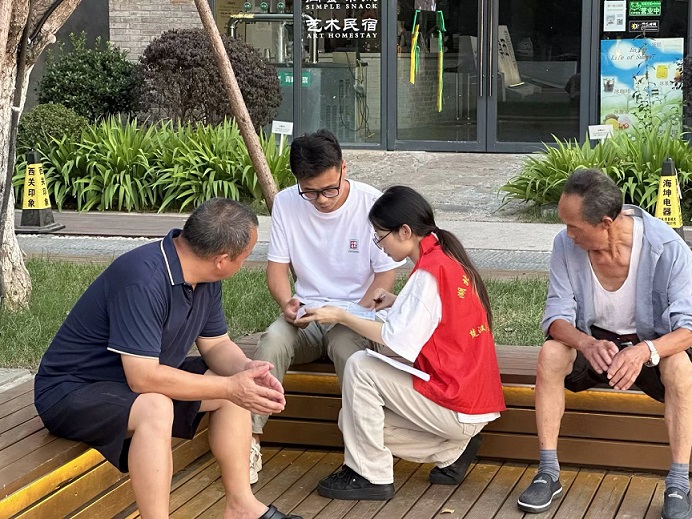 圖為楚漢青年志愿隊(duì)隊(duì)員分發(fā)科學(xué)就醫(yī)問卷。通訊員 黎運(yùn)鋒 攝
