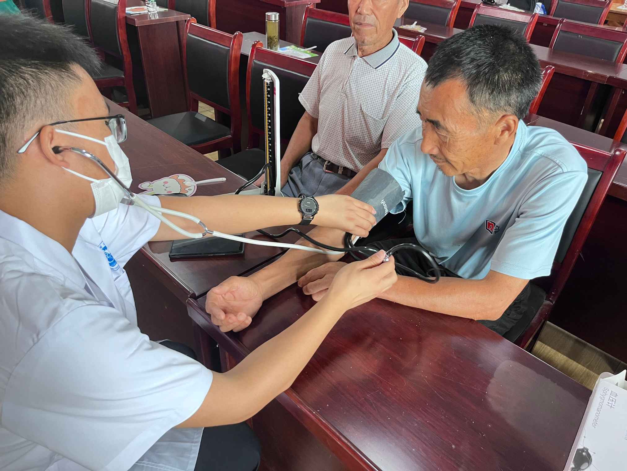活動地點選在一處多數由空巢老人定居的鄉鎮。根據人員和地點的特殊性,我們進行了量體溫、測血壓等基本護理,并向他們講解了醫療健康和保健知識。