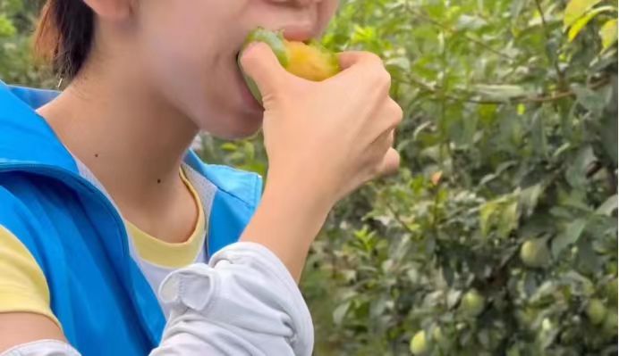 隨后實踐團又跟隨負責人分別進入了黃金奈李園、鷹嘴桃園、黃桃園、開口笑(桃中的一種品類)園,親身體會各農果之間的口感差別以及收成、銷售情況,為后續的幫售工作打下基礎。