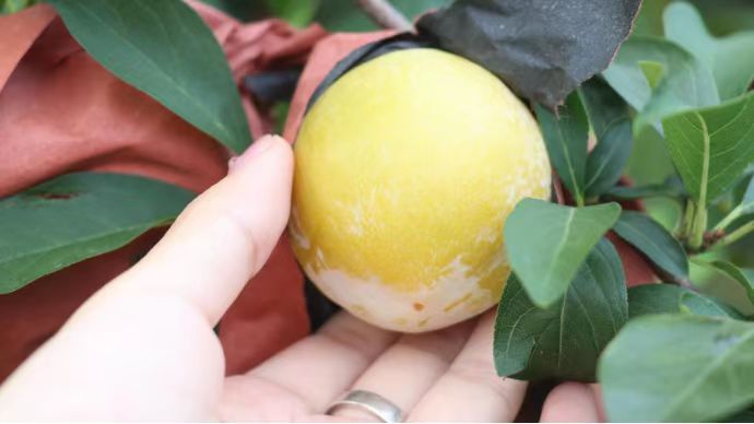 趕著采摘期,實踐團首先踏入了郁郁蔥蔥的翡翠奈李果園,在負責人的引導下,實踐團成員們學習到了如何在李子樹上挑選出鮮甜可口的奈李,了解到了套袋培育與不套袋培育的優缺點,并當場品嘗了負責人挑選出來的的翡翠李,綠油油的果皮下有著沁人心脾的鮮甜果肉,實踐團成員們都贊嘆不絕。