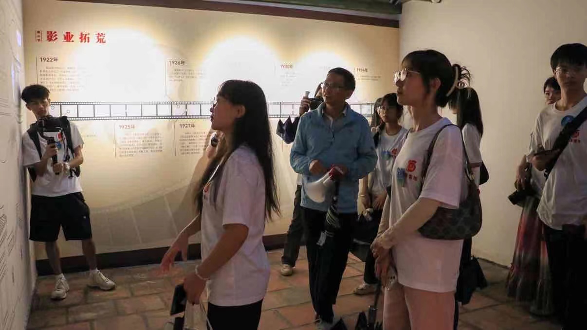 7月5日,南粵黨旗紅實踐團穿梭在光與影的流變中,感受“文與音、光與影”。南粵青年們跟隨上鹽村駐村第一書記劉暢,前往“中國電影之父”鄭正秋故居,一同參觀了由電影、僑鄉等文化元素交匯融合而成的電影文化鄉,回憶舊時光的故事,奔赴了一場舊時代電影之約,感受電影文化的獨特魅力。