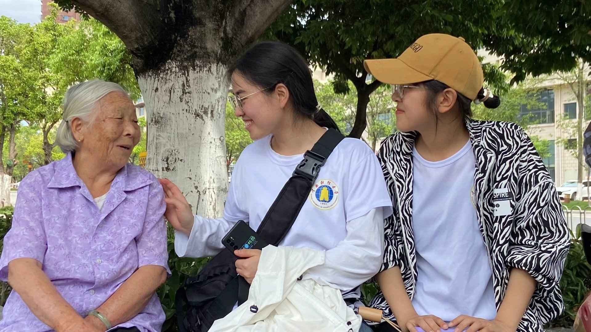 圖為實踐隊員詢問當地居民周邊生態文明建設情況。