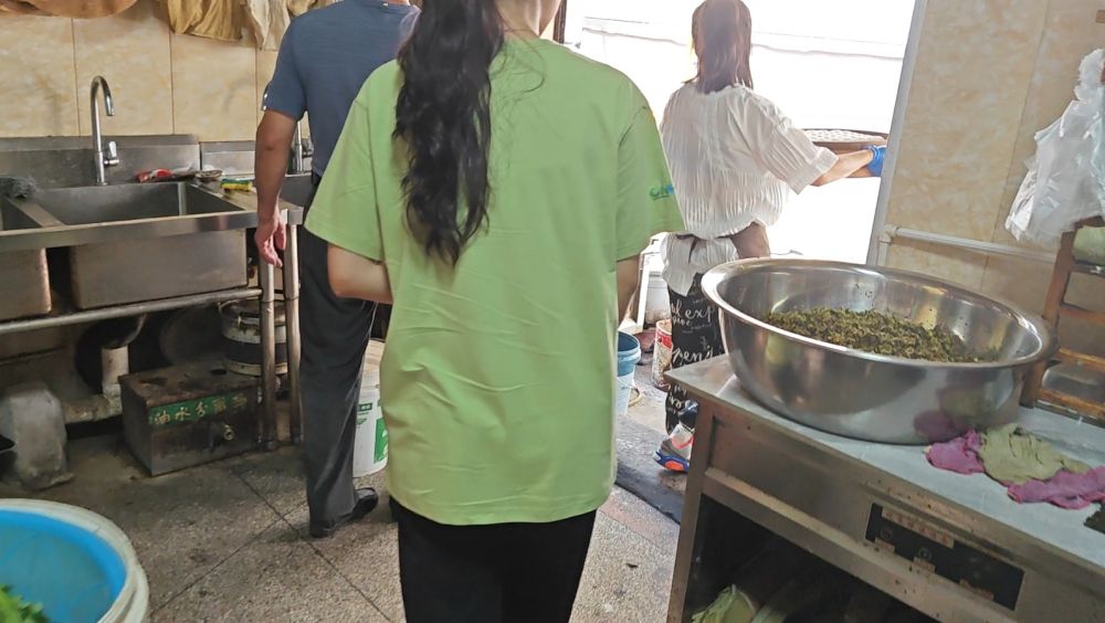初到店內,實踐隊成員跟隨店主熟悉了店內環境并初步了解了新市茶糕的傳統底蘊和有關傳承。跟隨著店家的介紹,成員們觀看和學習了新市茶糕的基本制作工藝,并對關鍵工藝作大致拍攝和記錄,以解決茶糕制作準備前期的疑難問題,為后期對傳統茶糕進行合理化改良和創新性開發打下基礎。