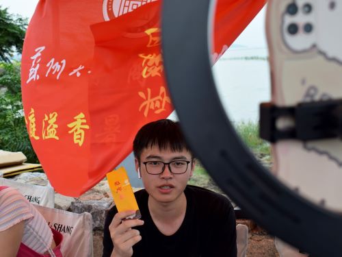 由于團隊成員的合理計劃,充分準備,直播當天效果較為可觀,最高有200人次觀看直播。攤位也有不少客人光顧生意。有的客人在得知這是一次大學生助農實踐活動后,對團隊這次的活動表示認可,并主動過來支持。其中有兩位東北大學的青年,來到團隊成員實踐的場所,簡單詢問過后購買了十幾包茶葉,并與他們進行了合照在朋友圈進行宣傳以支持團隊的助農活動。兩位青年說,“我們看到蘇州大學四個字特地下車的,很開心你們能夠在暑假進行這么有意義的事情,這也是我們在大學期間一直想做的。”