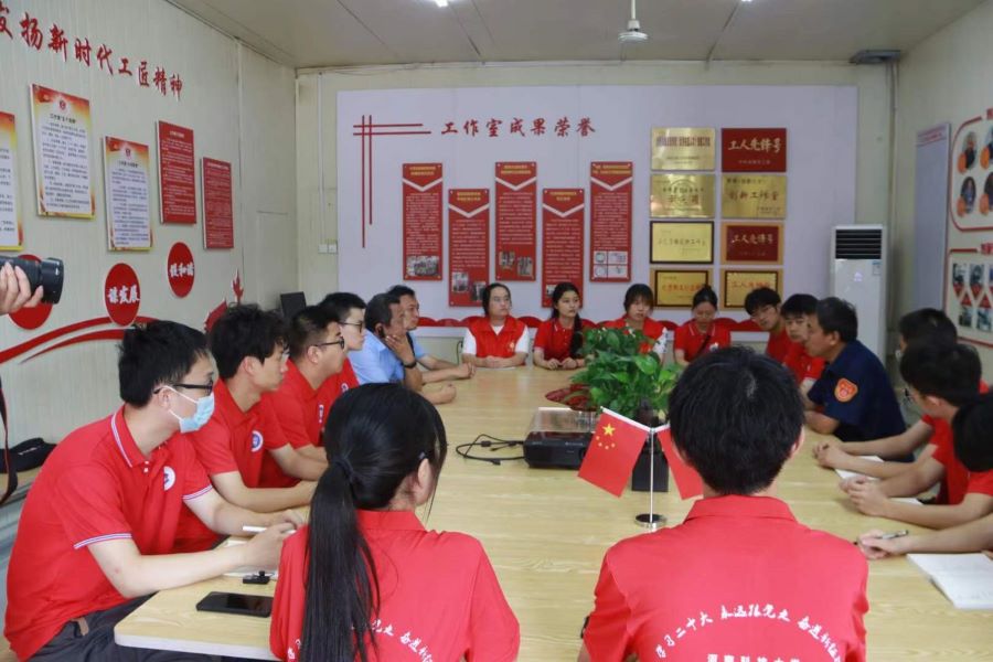 然后,團隊來到黨的十九大代表、“大國工匠”榮譽獲得者劉新安同志的工作室,聽劉新安同志向實踐團介紹產學研模式下的優勢、生產和學習的關系、對青年個人規劃的建議等內容。