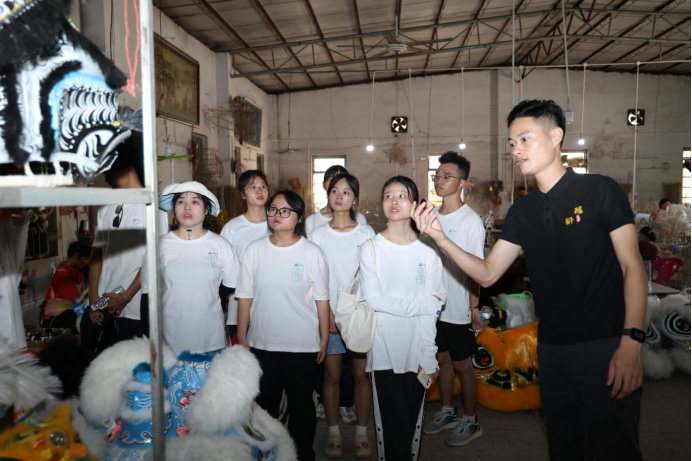 接下來,李祖杰向實踐隊員們逐一介紹展廳里的醒獅,有意蘊大富大貴之意的彩獅中的劉備獅,有武財神之稱的關羽獅,還有性格勇猛好斗,用于鎮館、踢館的張飛獅等等眾多醒獅種類。