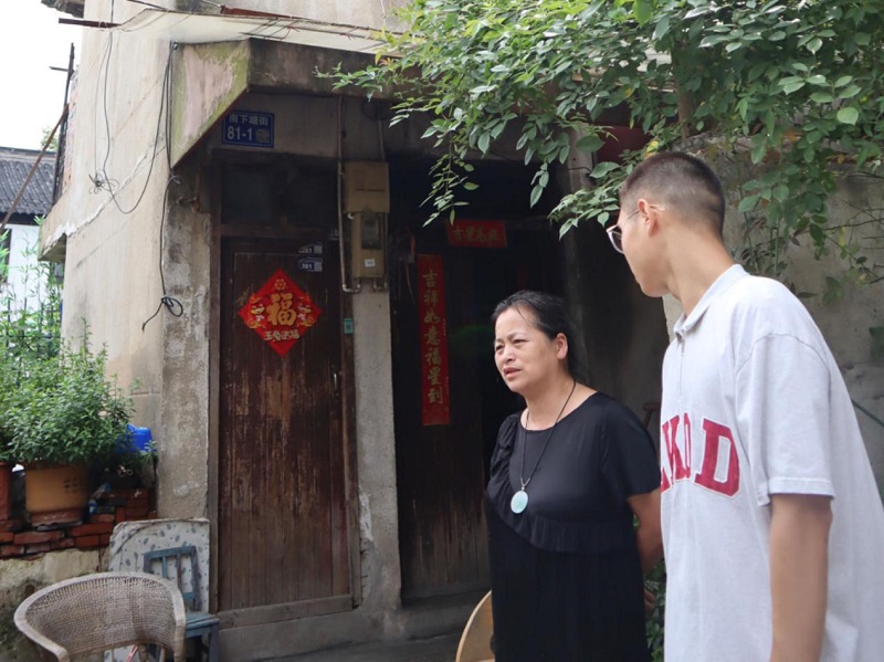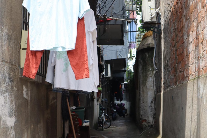 圖為團隊成員對被采訪阿姨的南下塘周圍鄰里居住環境進行調研。