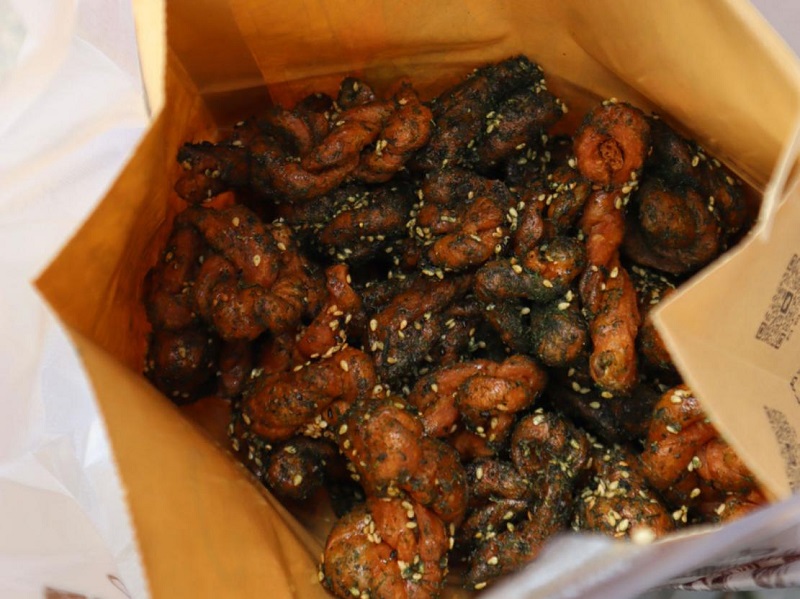 圖為團隊成員購買品嘗店內創新的海苔味油贊子。