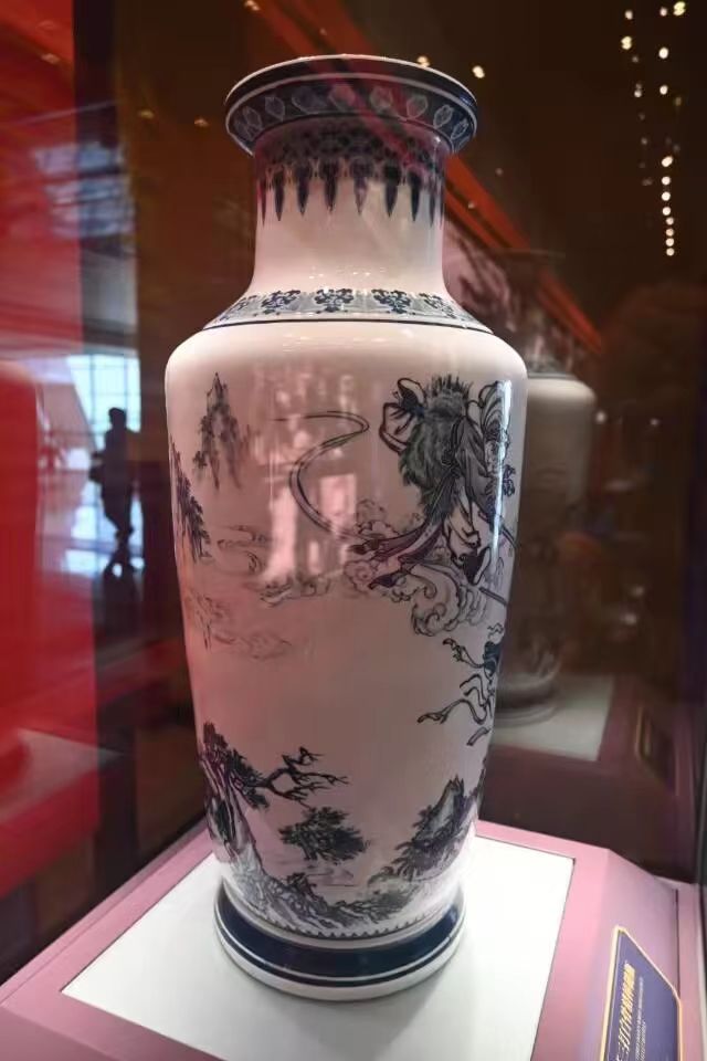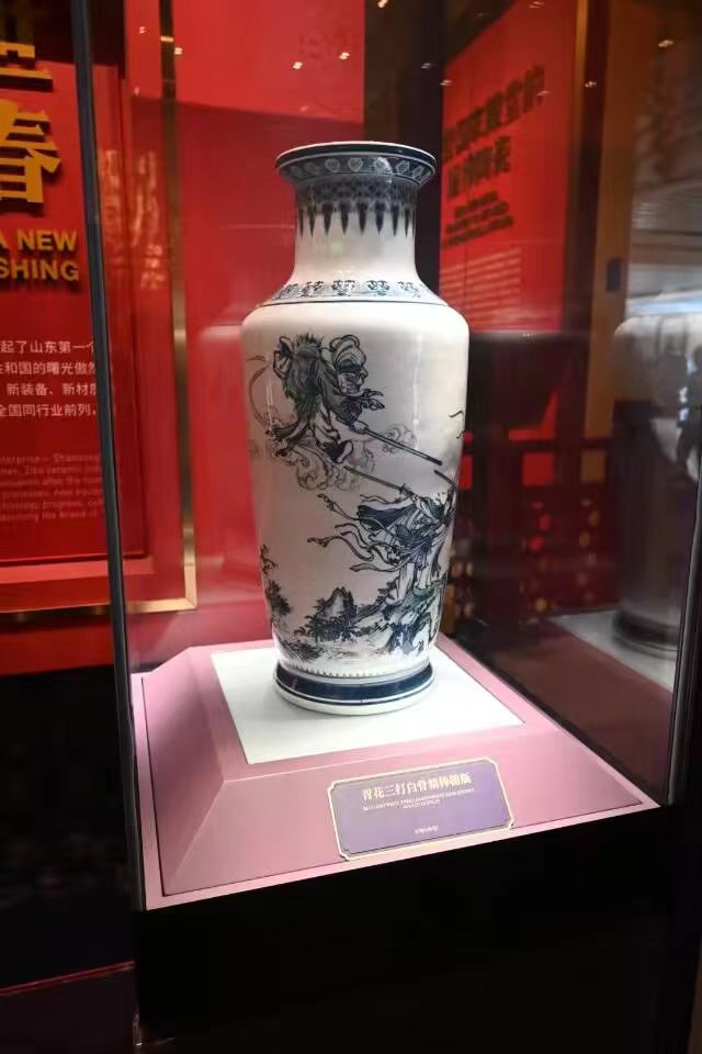 山東理工大學機械工程學院的齊稷瓷色實踐團在淄博陶瓷琉璃博物館的參觀學習中,皆嘆服于瓷器的細膩與其制作工藝的精湛,青花三打白骨精棒槌瓶是團員們影響深刻的作品之一。