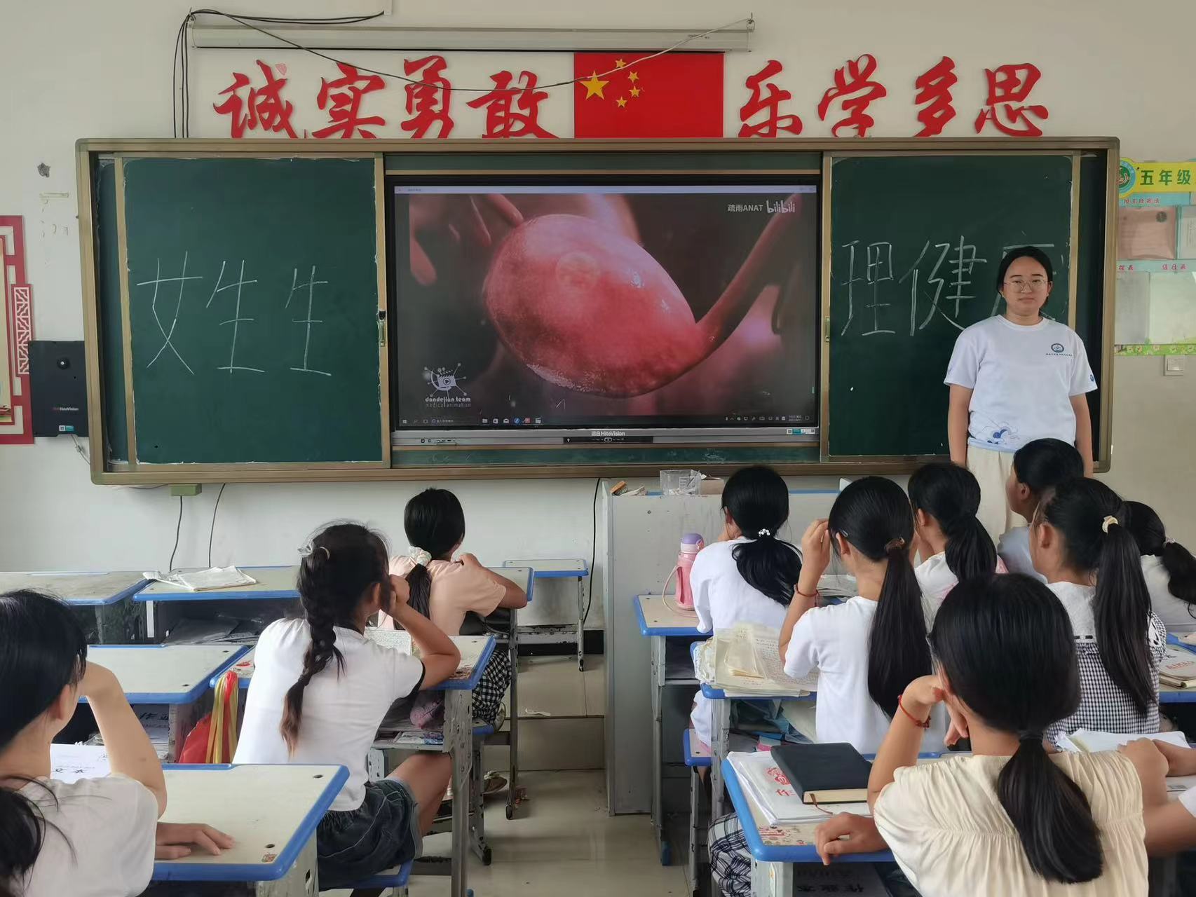 在這次的暑期支教活動中,我們團隊給王小莊小學四五年級的學生安排了生理健康教育課,對女生們介紹月經相關的知識和注意事項。