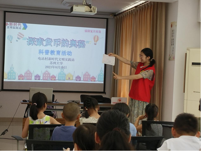 圖為實踐團成員開展“探索貨幣的奧秘”課程