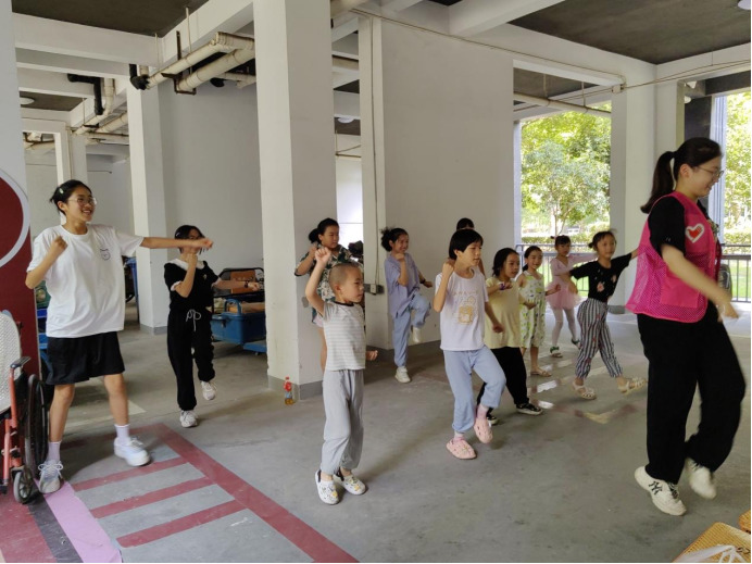 圖為實踐團成員帶領孩子們進行“陽光運動”