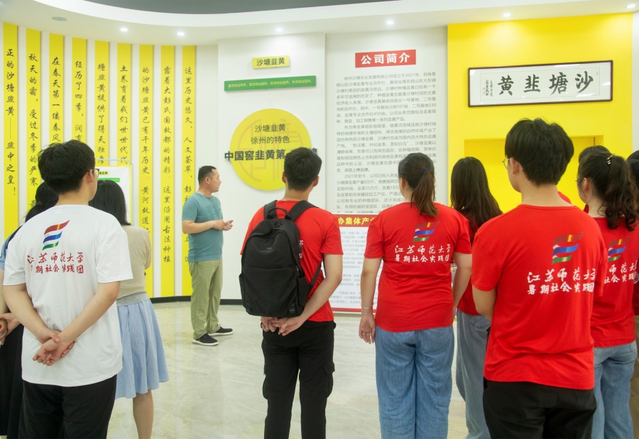 為深入學(xué)習(xí)貫徹黨的二十大精神,觀摩鄉(xiāng)村振興成效,探尋綠色發(fā)展新路徑,7月13日,江蘇師范大學(xué)物理與電子工程學(xué)院“與理同行”理論普及實(shí)踐團(tuán)走進(jìn)徐州市銅山區(qū)大彭鎮(zhèn),參觀當(dāng)?shù)卮硇云髽I(yè)。
