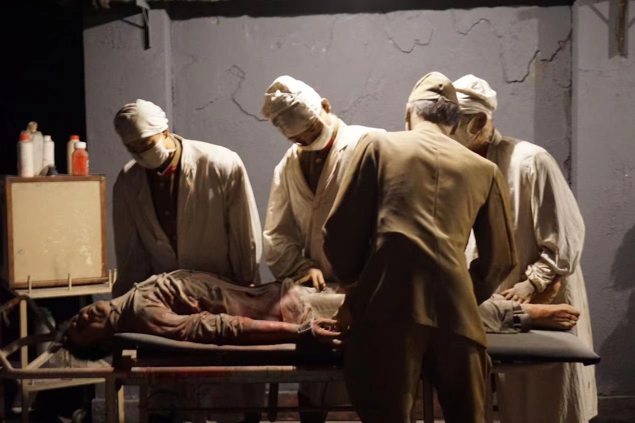 進入到“九一八”歷史博物館前的空地,映入眼簾的就是一個展開書本狀的石雕,上面雕刻著九一八事件發生當天的日歷,悲壯之感尚未進入博物館內就油然而生。進入到館內,燈光以及室內設計都讓團隊成員連連驚嘆,屏幕上不斷播放“哪年哪月才能夠回到我那可愛的故鄉?”一段段數據、一個個陳設,我們深感悲痛。其中最讓人驚訝的是一面殘破的墻,可以從磚縫中看到里面日軍細菌實驗的情景,令人身臨其境。除此之外,還有一段白色的雪山路,隨著游客向上走,地面上會映出一段一段的足跡,走過的路足跡會消失、前方的路會出現新的足跡,歷史就同這段路一樣,不斷向前,不斷走向進步。